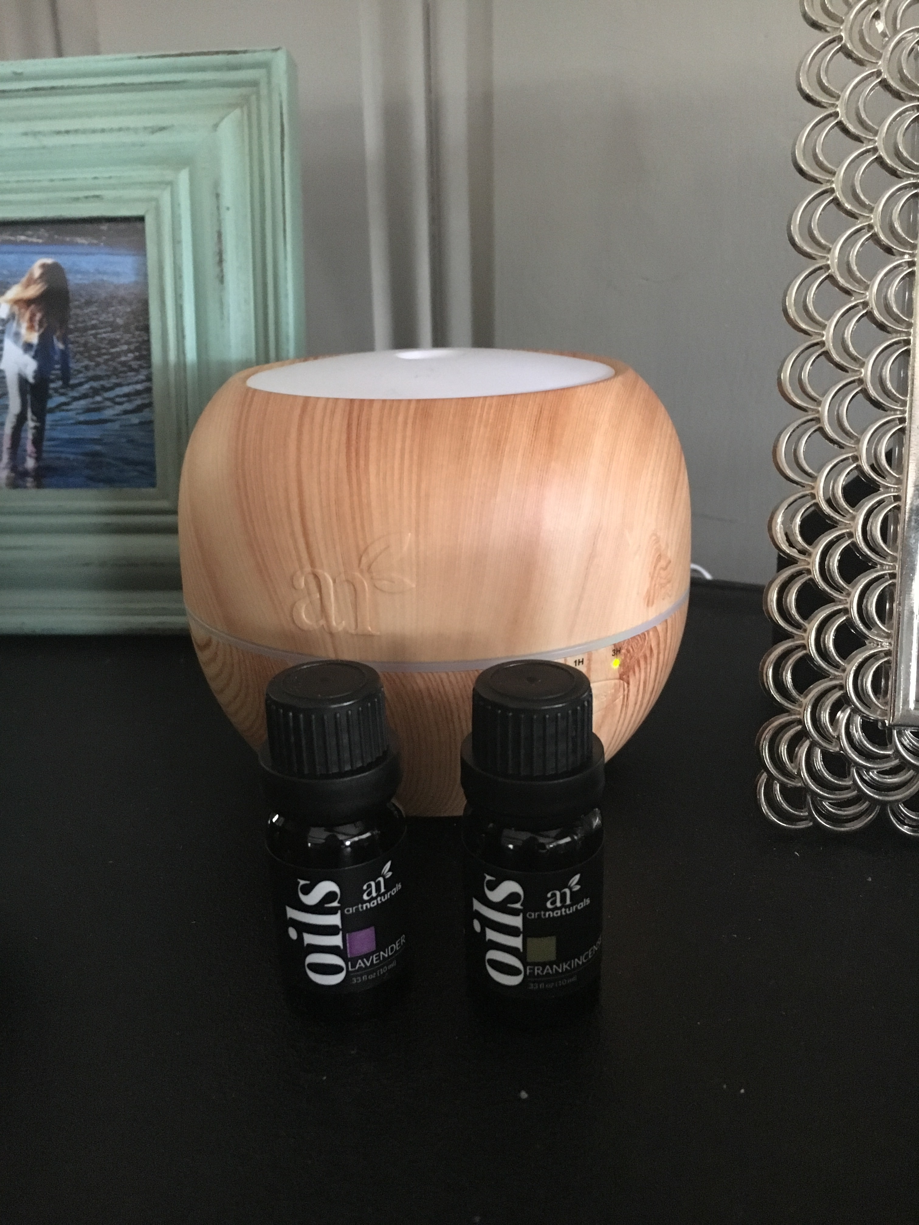 I’m building up to the fact that it was the perfect day to arrive home and find that my essential oils had been delivered and I could start my experiment. Surely there was something in there that was calming – though Ella was now asleep and pretty damn calm. The diffuser was unobtrusive with its light colored wood, and the oils made me happy because they were neatly arranged in an, albeit cardboard, flat box. I like organization. It could have been better if all the labels had been facing outward, but geez, what kind of diva am I? The thing was forty dollars, for the love of Betty White.